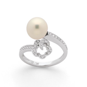 Bague perle de culture Akoya Japon 8,5mm et Diamants 0,30 carat Or blanc