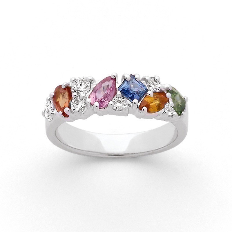 Bague Saphirs multicolors 1,25 carats accompagnés Diamants 0,32 carat Or blanc