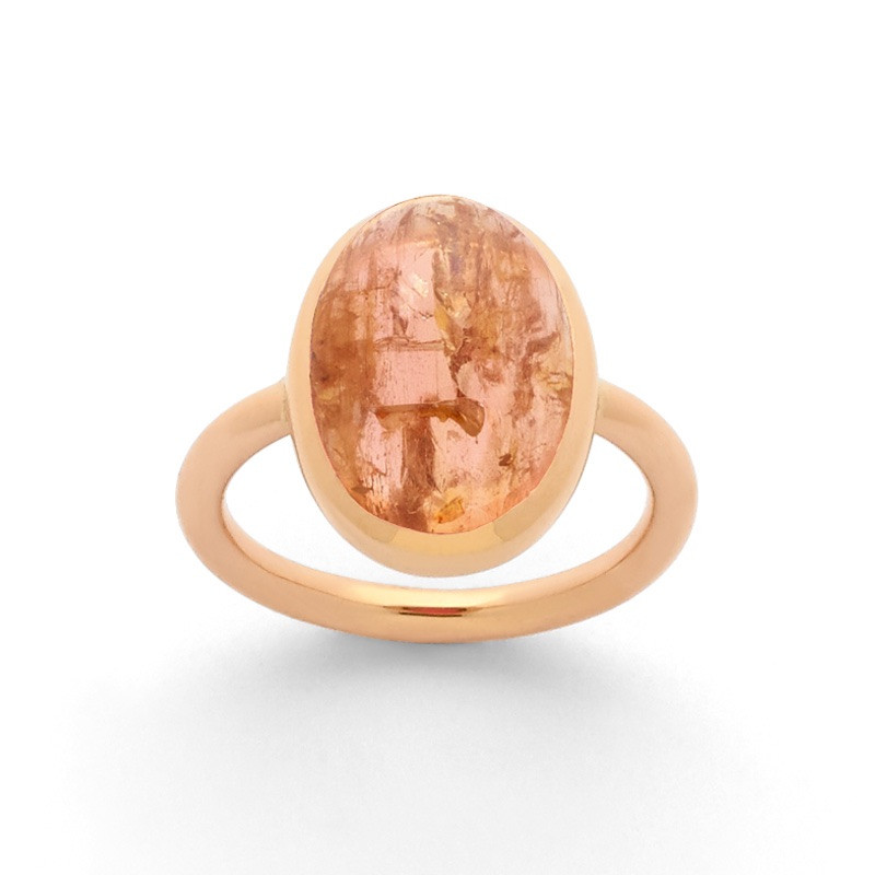 Bague Topaze miel 10,50 carats ovale taille cabochon Or rose