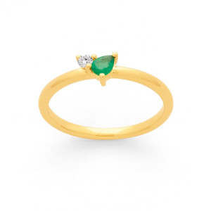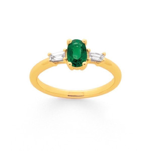 Bague Grenat Tsavorite 0,78 carat accompagné de 0,20 carat de Diamants Or jaune