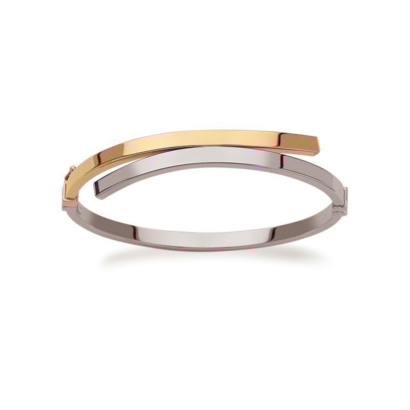 Bracelet rigide ouvrant 6mm décalé Or blanc et Or jaune