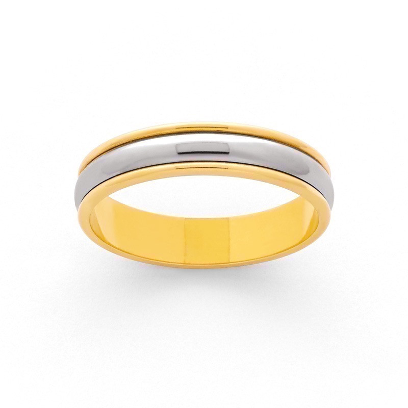 Alliance platine & or Jaune section demi jonc 3,8mm