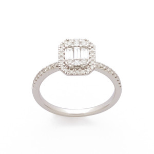 Solitaire Diamant 0,20 carat accompagné de 0,26 carat de Diamants Or blanc