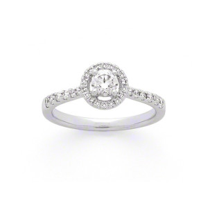 Solitaire Diamant 0,20 carat accompagné de 0,33 carat de Diamants Or blanc