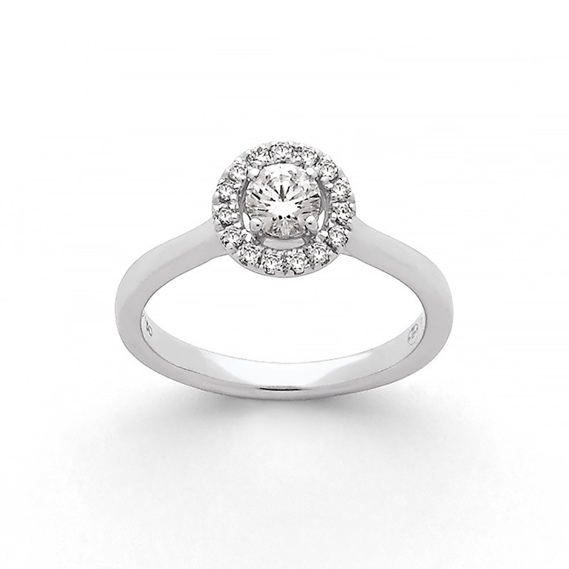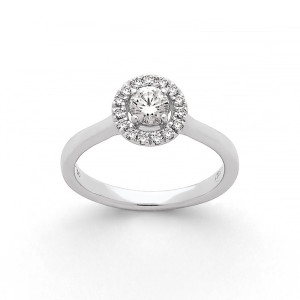 Solitaire Diamant 0,30 carat et entourage Diamants 0,13 carat Or blanc