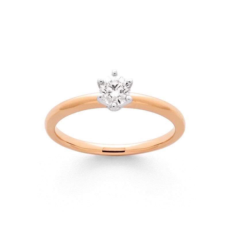 Solitaire Diamant 0,34 carat E SI1 6 griffes Or rose et Or blanc