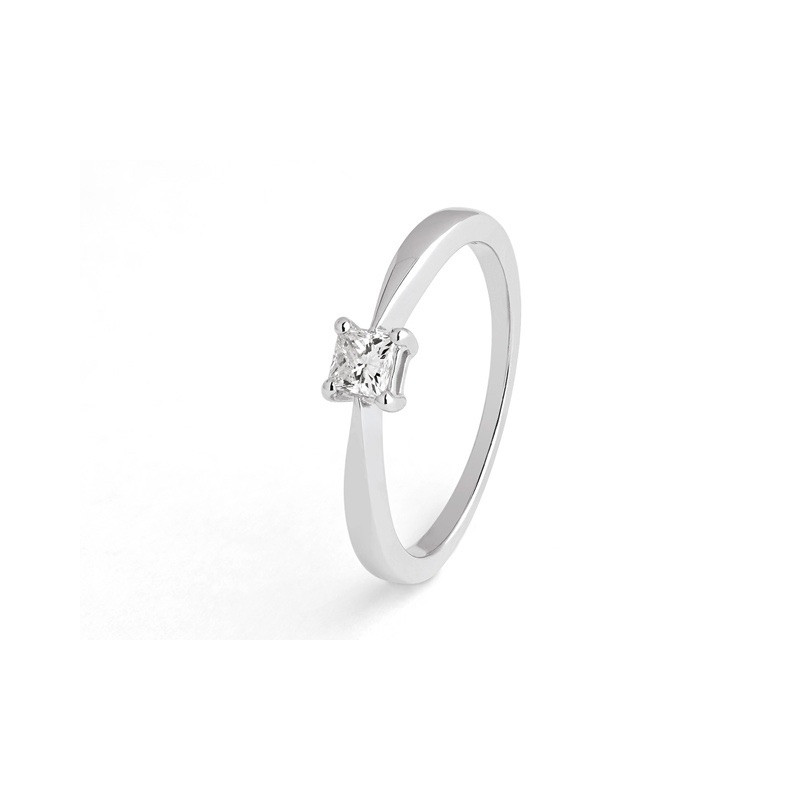 Solitaire Diamant taille princesse 0,20 carat serti 4 griffes Or blanc