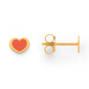 4. Boucles d'oreilles enfant cœurs laqués corail Or jaune