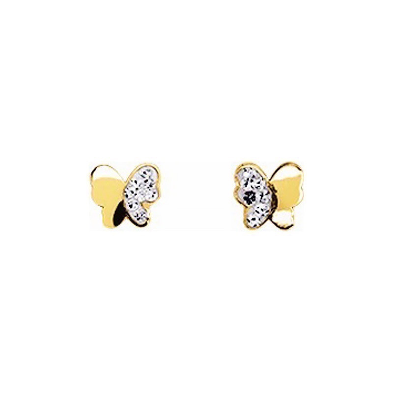 Boucles d'oreilles enfant papillons effet brillanté Or jaune