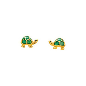 Boucles d'oreilles enfant tortues laquées vertes Or jaune