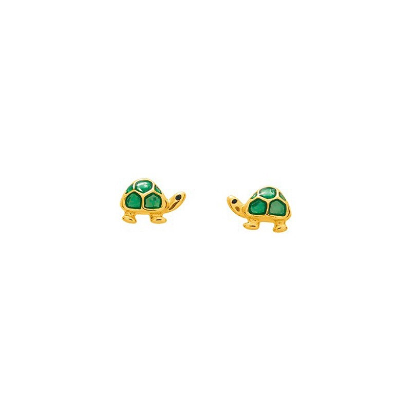 4. Boucles d'oreilles enfant tortues laquées vertes Or jaune