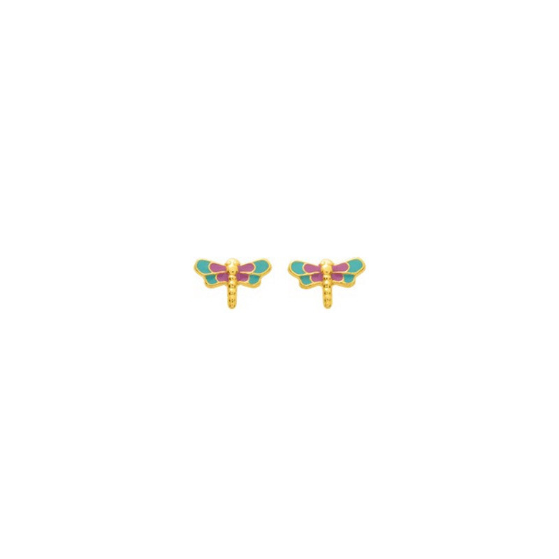 Boucles d'oreilles enfants libellules laquées 5mm Or jaune
