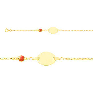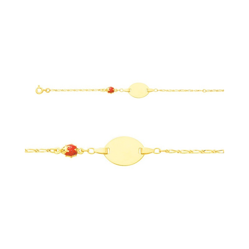 Bracelet identite bébé maille alternée 1/1 plaque ovale coccinelle Or jaune