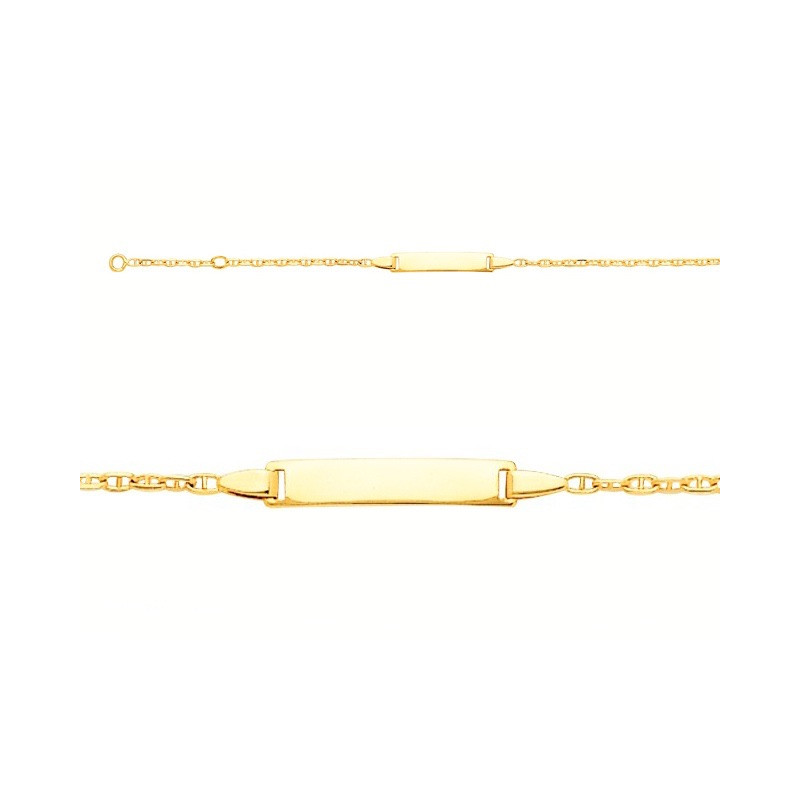 Bracelet identité bébé maille marine plaque rectangle Or jaune