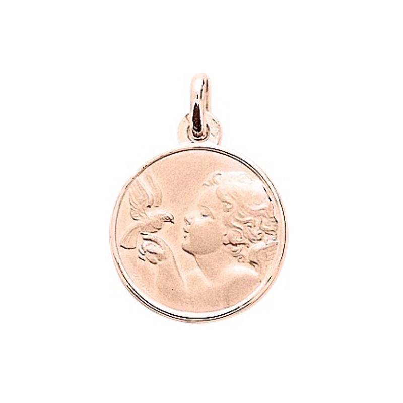Médaille ange à la colombe 16mm Or rose