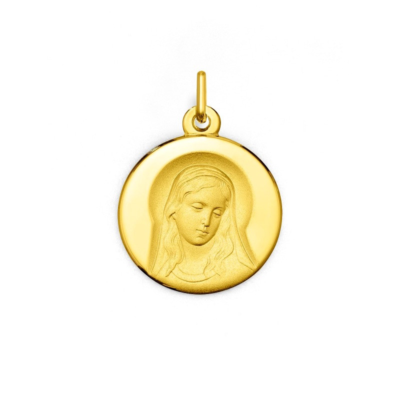 4. Médaille vierge creusée 18mm Or jaune lisse et brossé