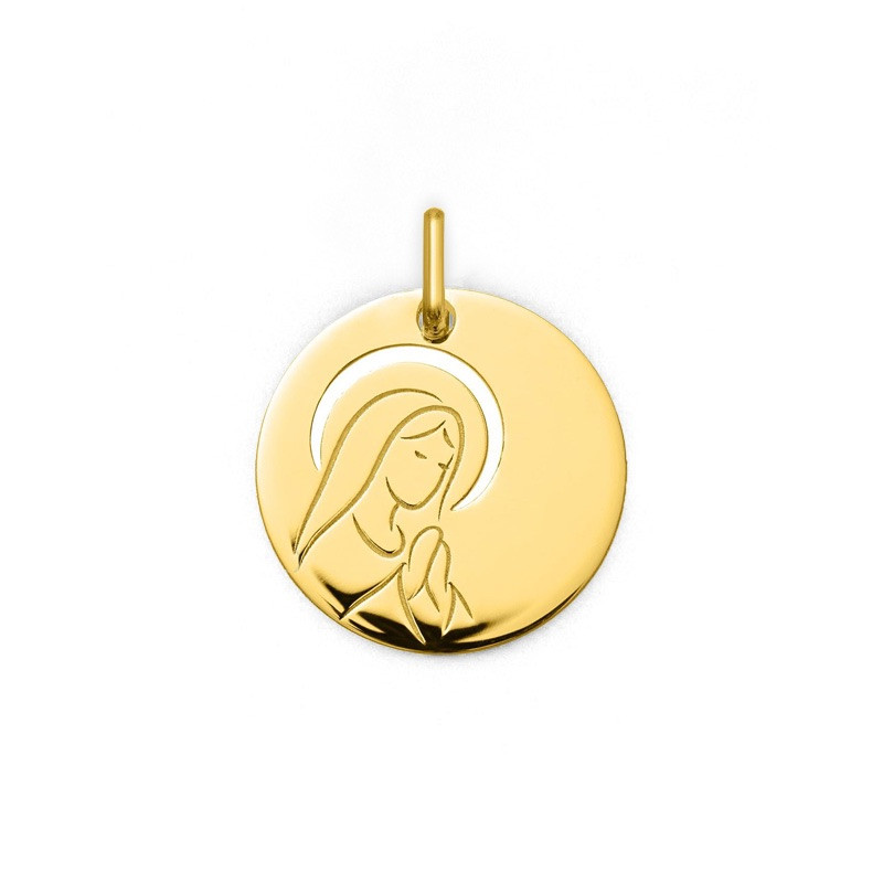 Médaille vierge lisse croissant ajouré 15,5mm Or jaune