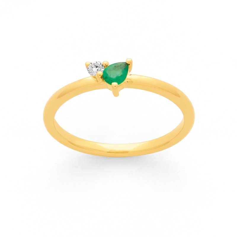 Bague Emeraude 0,18 carat accompagnée d'un Diamant de 0,04 carat Or jaune