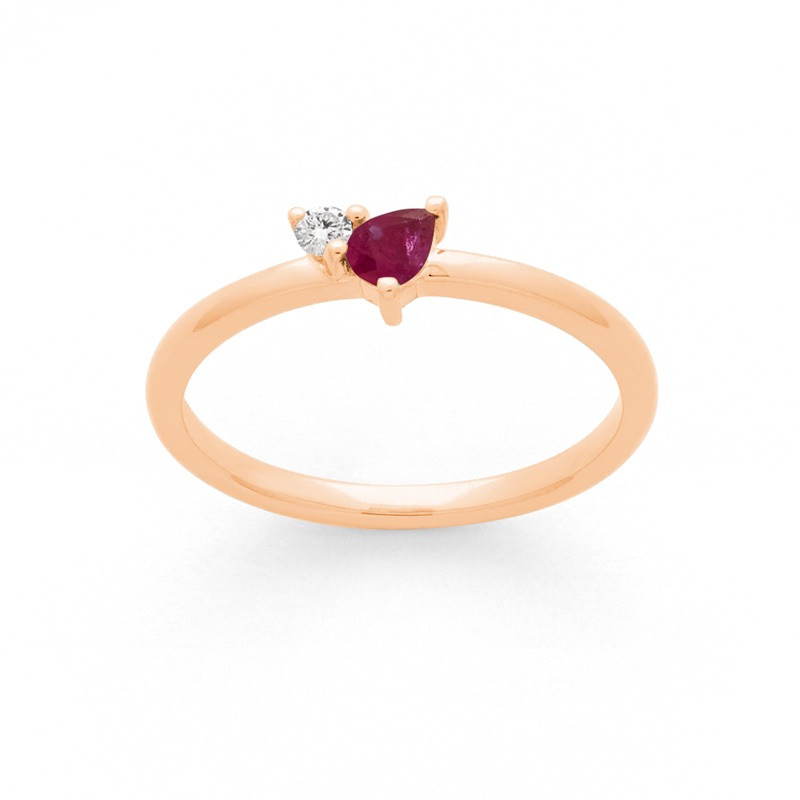 Bague Rubis 0,23 carat accompagné d'un Diamant de 0,04 carat Or rose