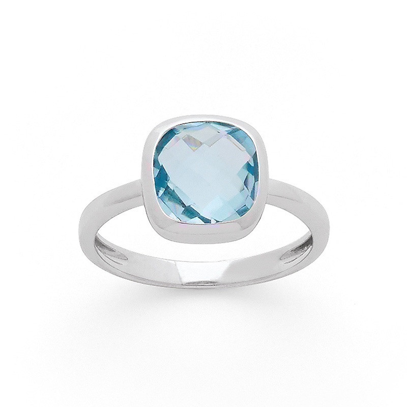 Bague Topaze bleue taille coussin brioletté Or blanc