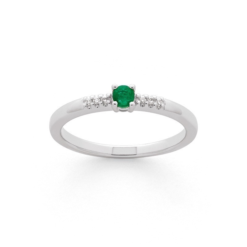 Bague Emeraude 0,12 carat épaulement Diamants 0,03 carat Or blanc