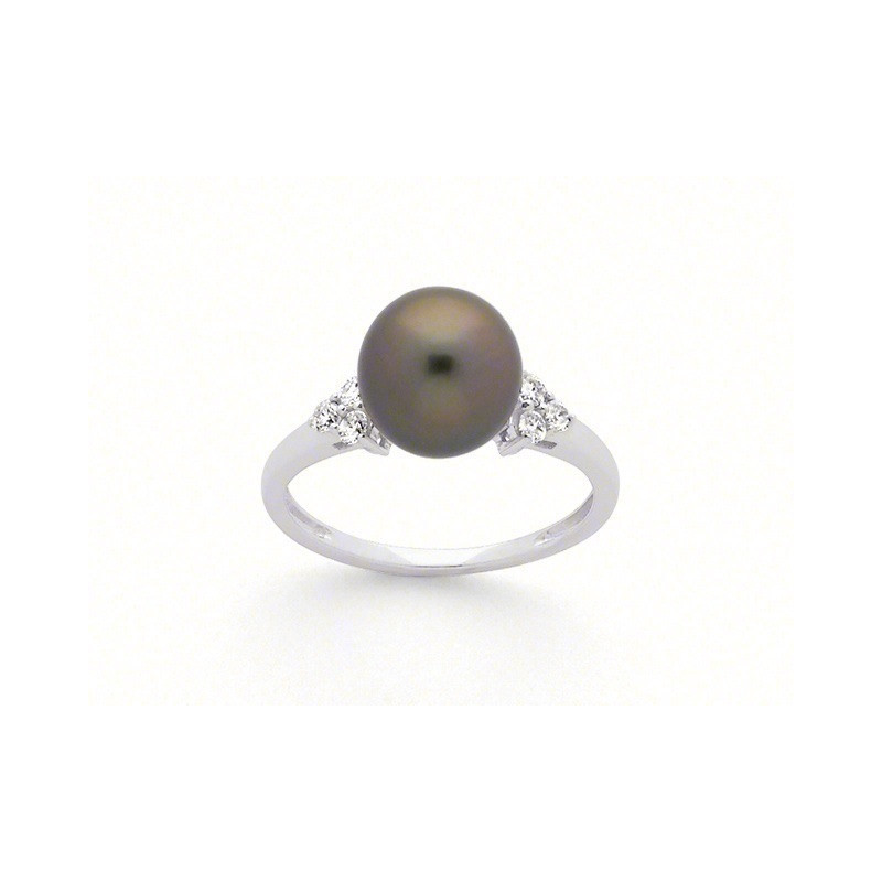 Bague perle de culture de Tahiti 9mm et Diamants 0,14 carat Or blanc-1