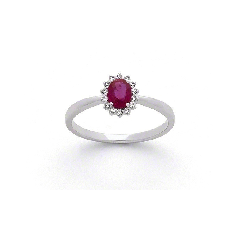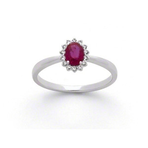 Bague Rubis 0,28 carat entourage Diamant 0,09 carat Or blanc