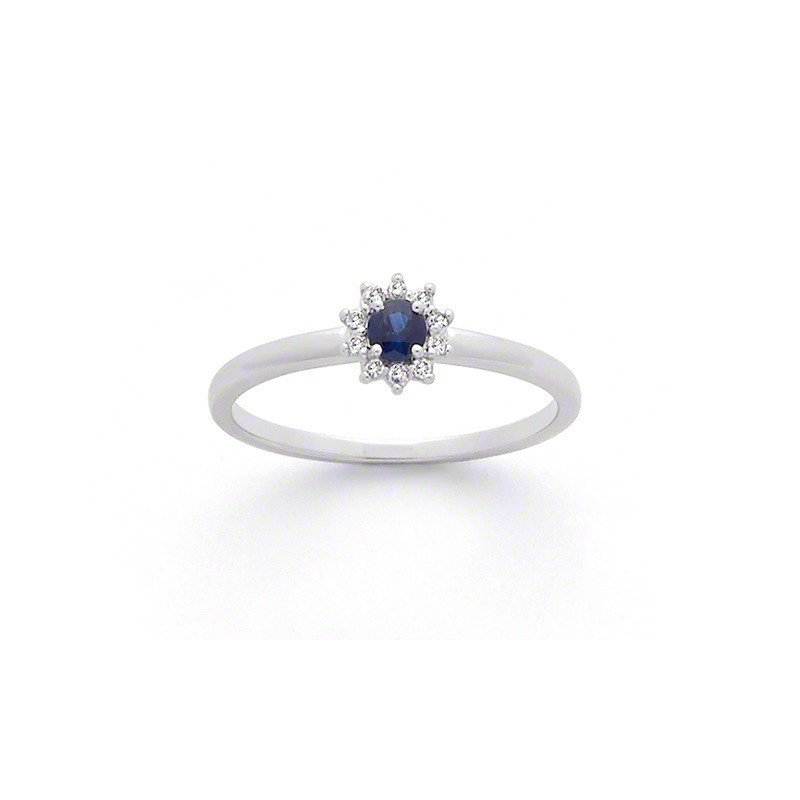 Bague Saphir 0,15 carat entourage Diamants 0,06 carat Or blanc