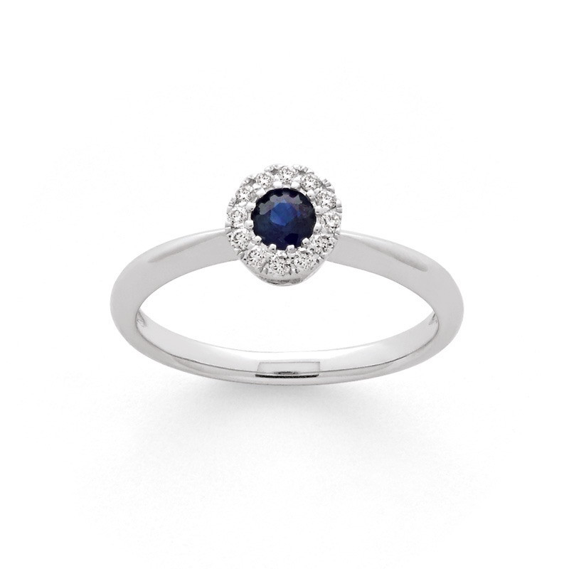Bague Saphir 0,22 carat entourage Diamants 0,10 carat Or blanc