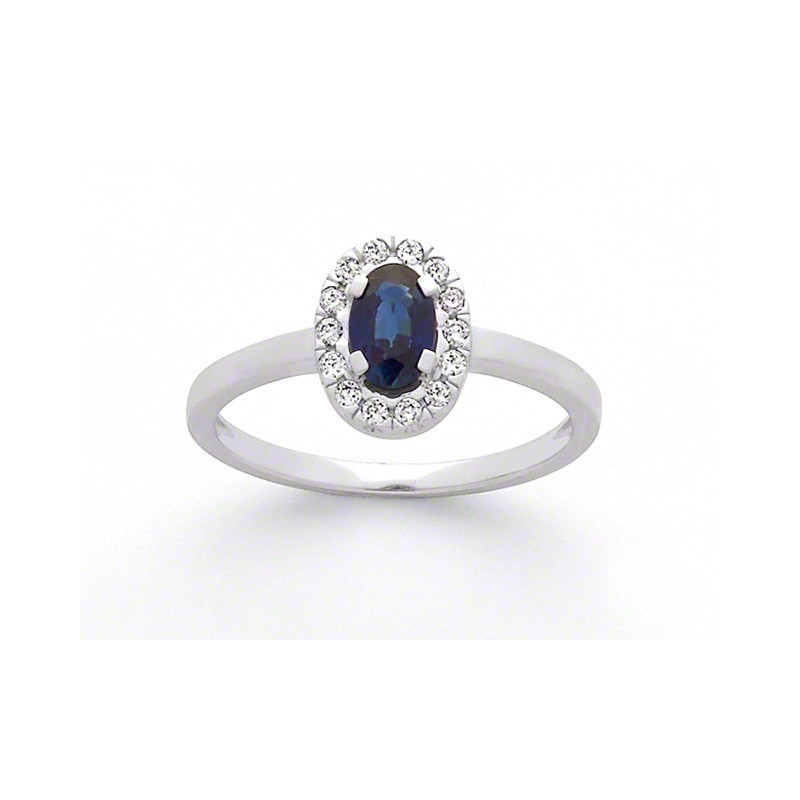 Bague Saphir 0,59 carat entourage Diamants 0,12 carat Or blanc