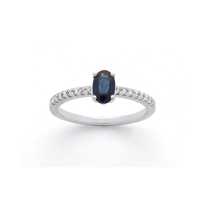 Bague Saphir 0,76 carat épaulement Diamants 0,11 carat Or blanc