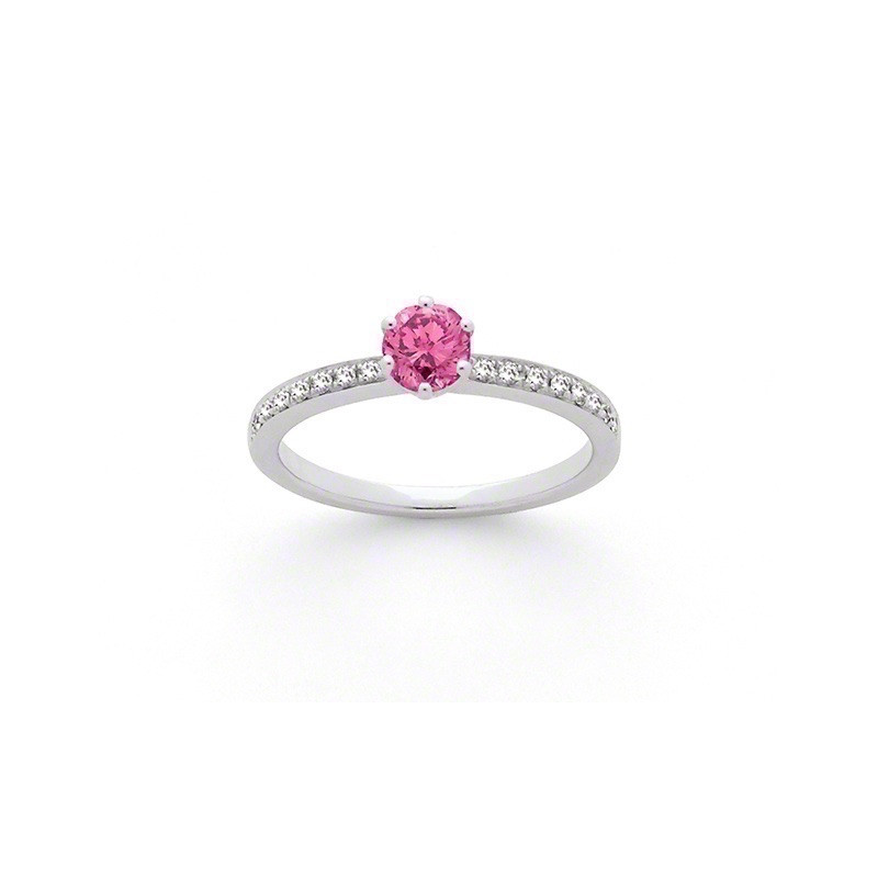 Bague Saphir rose 0,38 Carat 6 griffes et Diamant 0,13 Carat G SI Or blanc