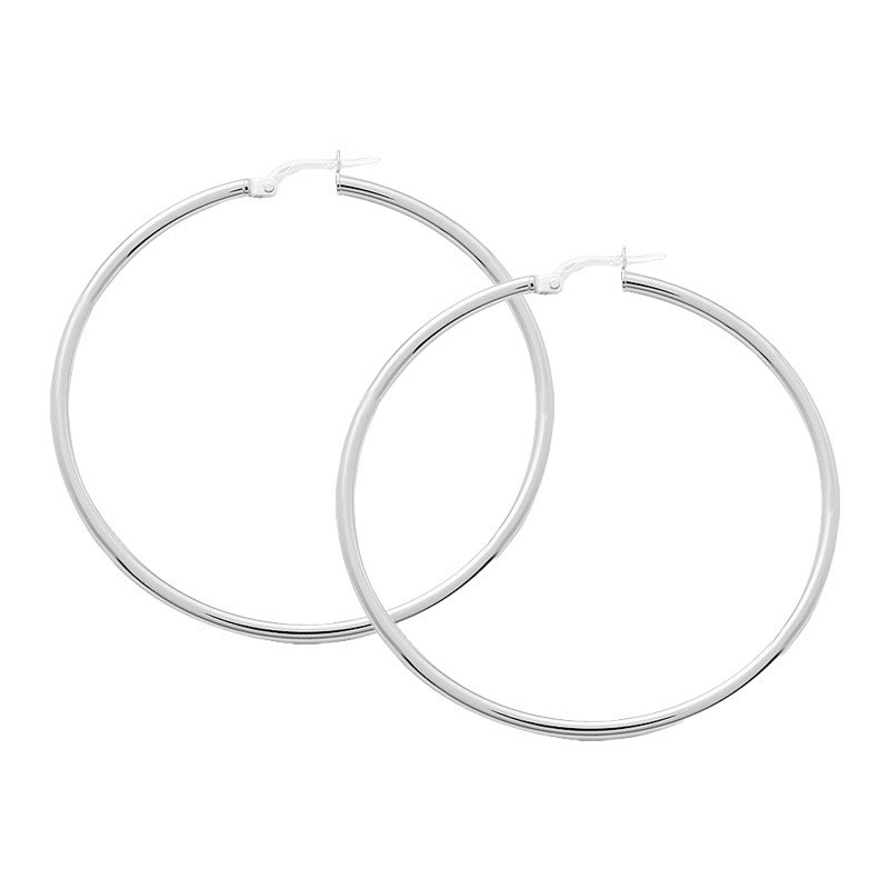 Créoles fil rond section 2mm diamètre 45mm Or blanc
