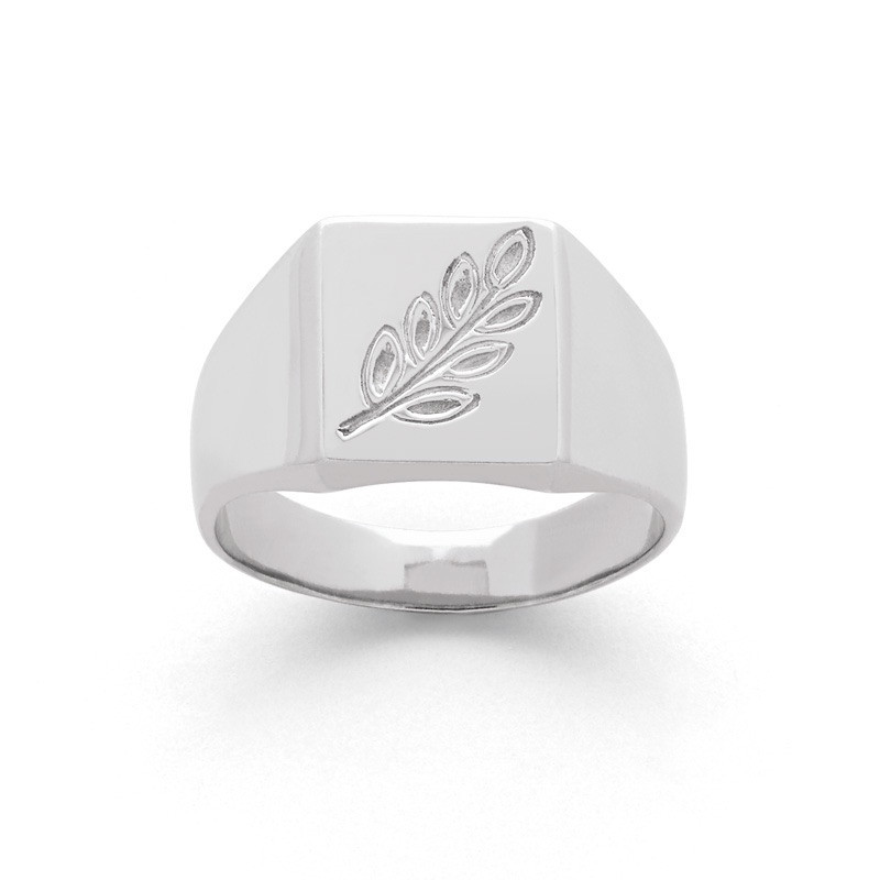 Chevalière homme gravée d'une feuille d'acacia Argent