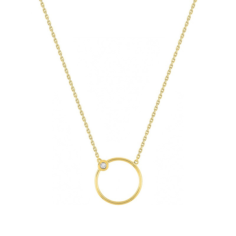 Collier Diamant 0,01 carat motif cercle sur chaine forçat Or jaune