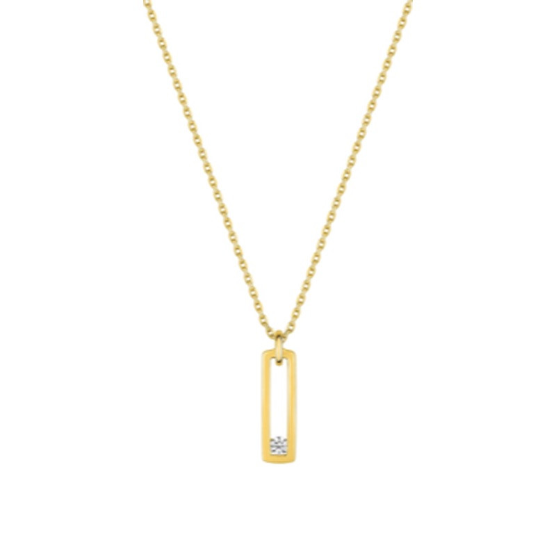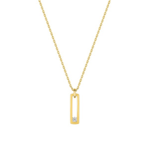 Collier motif rectangulaire Diamants 0,04 carat sur chaîne forçat Or jaune