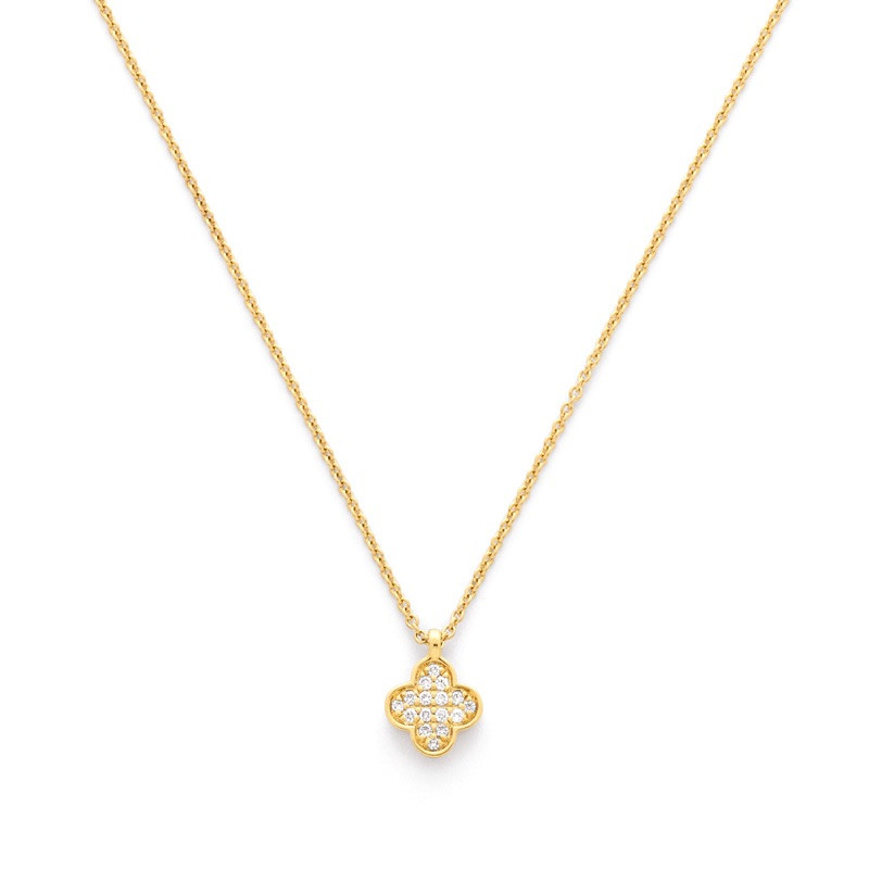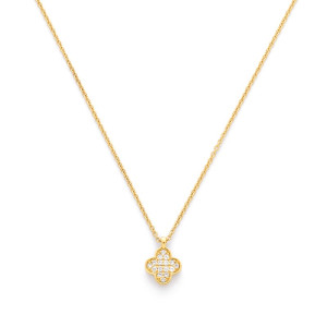 Collier motif trèfle à quatre feuilles pavé de Diamants 0,06 carat Or jaune