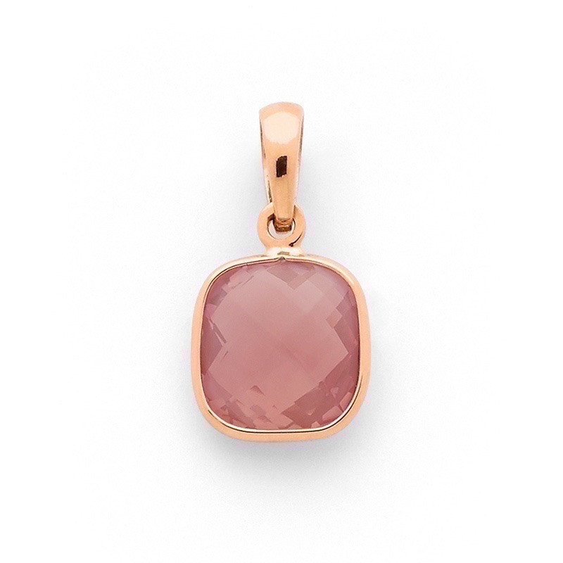 Pendentif Calcédoine rose taille carré briolettée serti clos Or rose